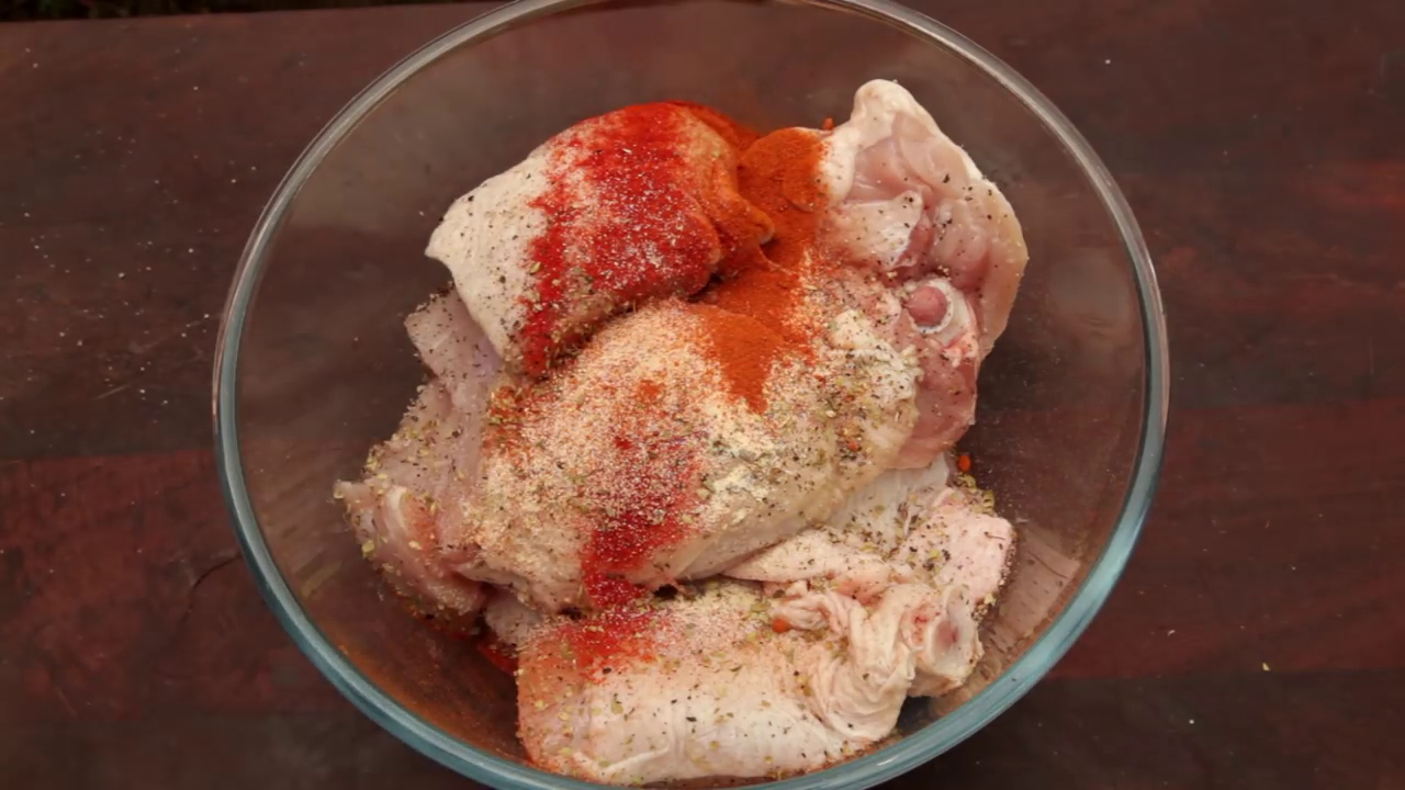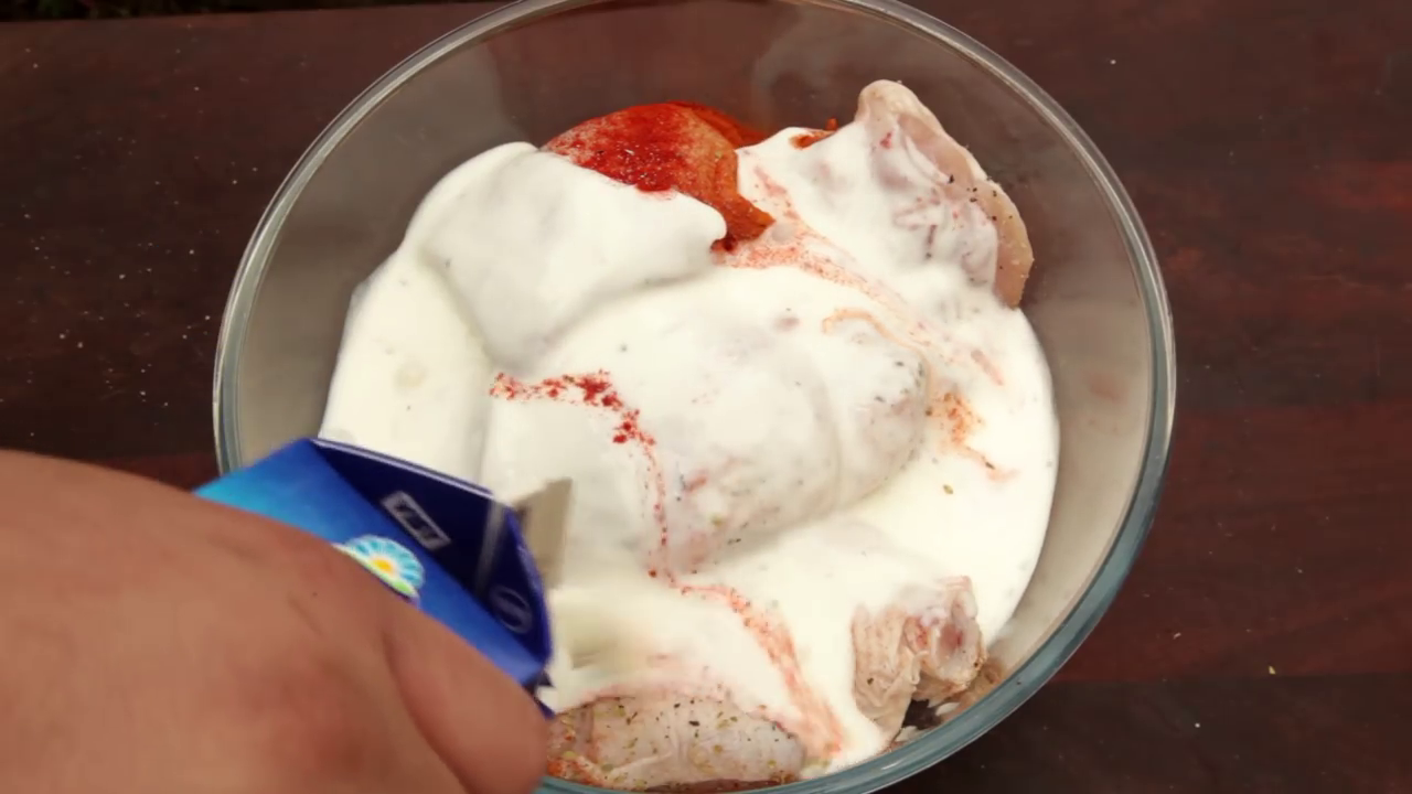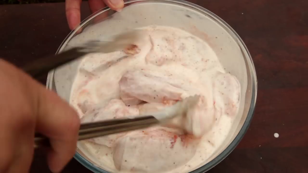 Thoroughly mix the chicken with the butter milk, we want the chicken to be fully coated in the spices.