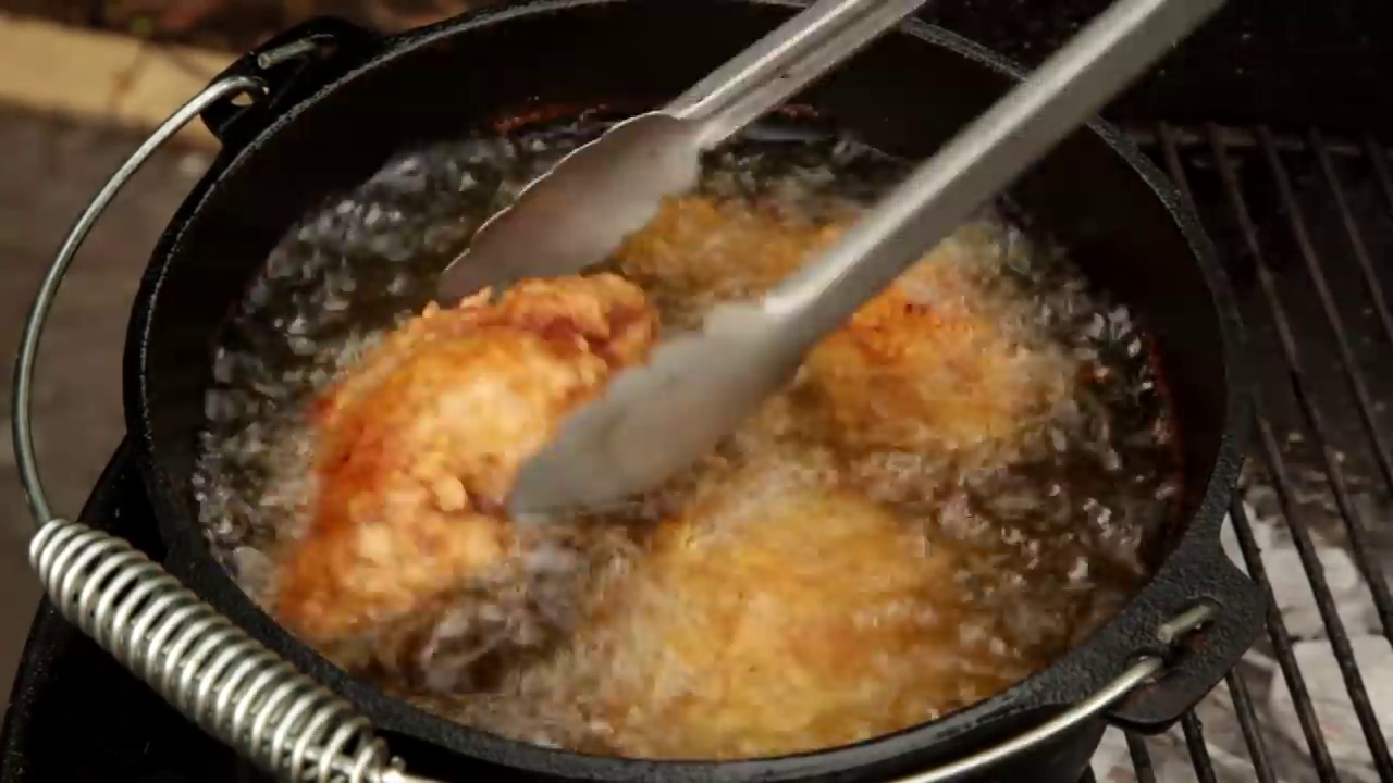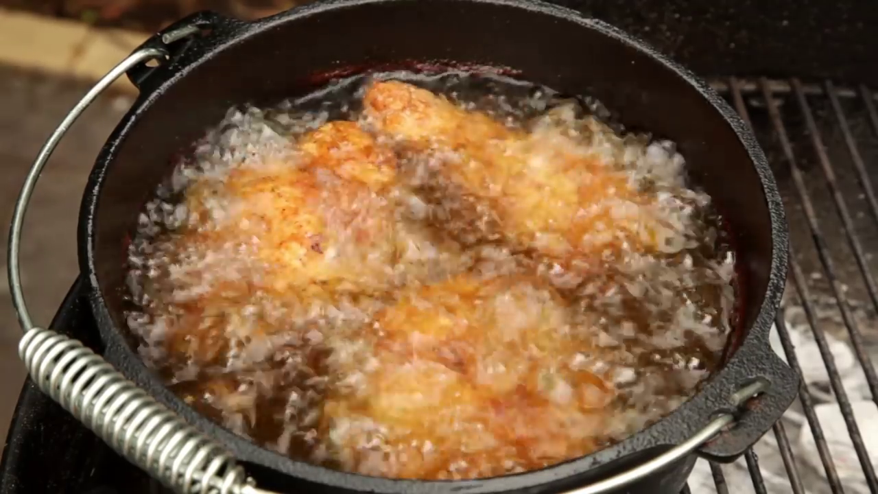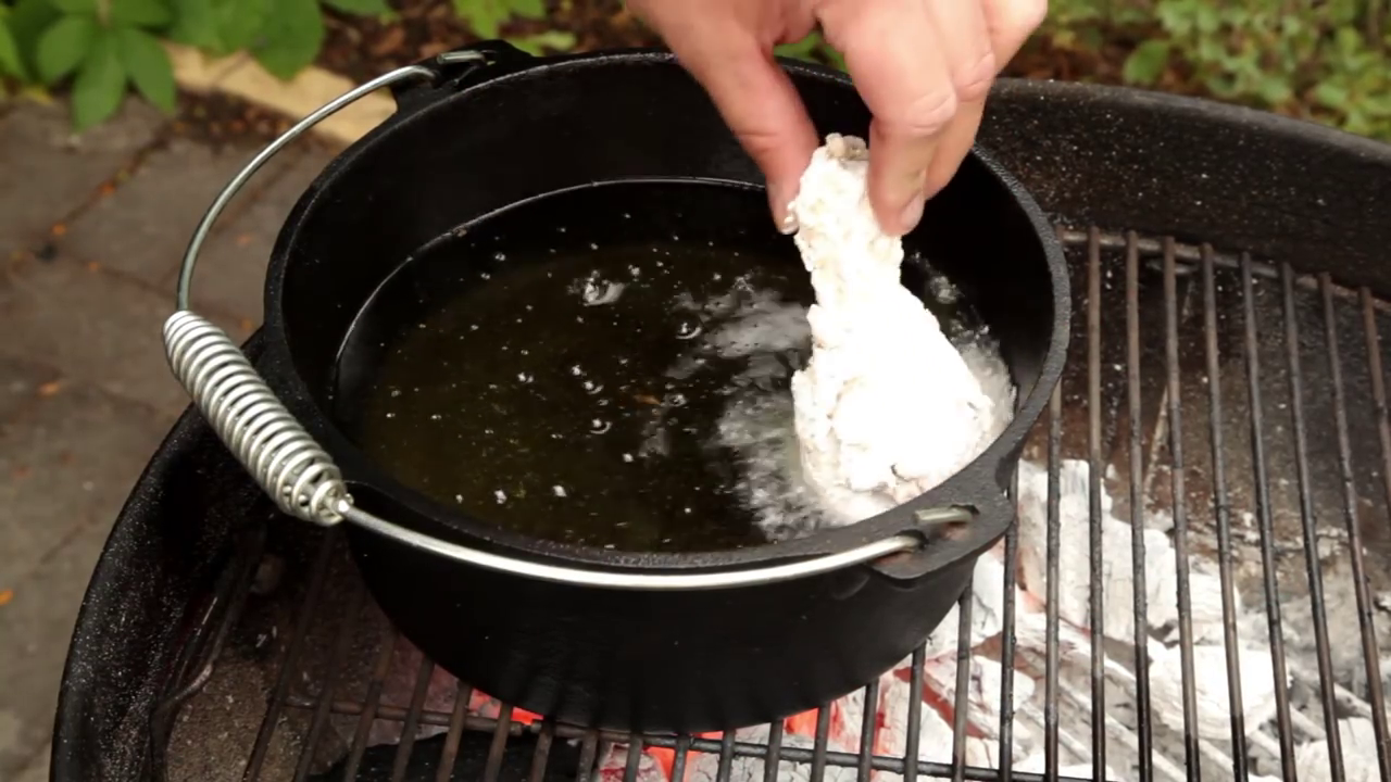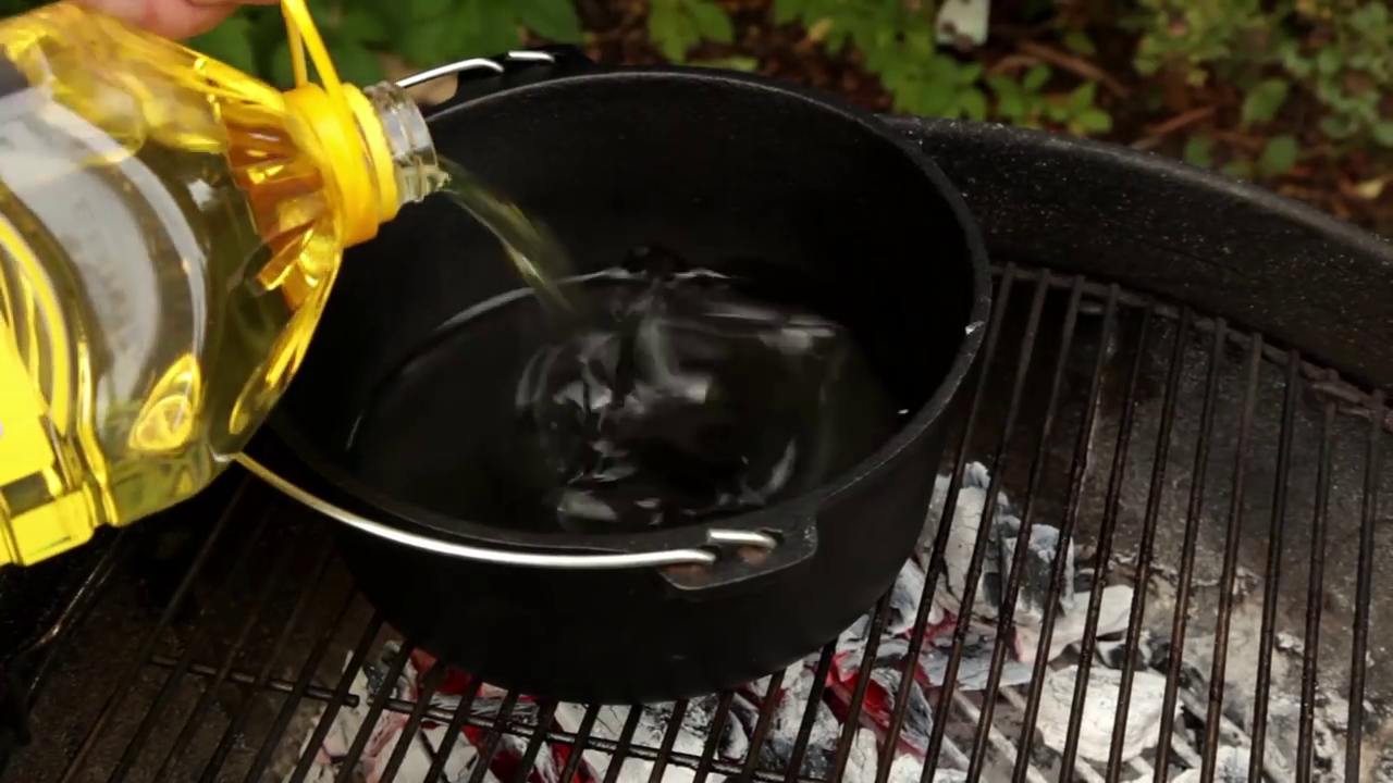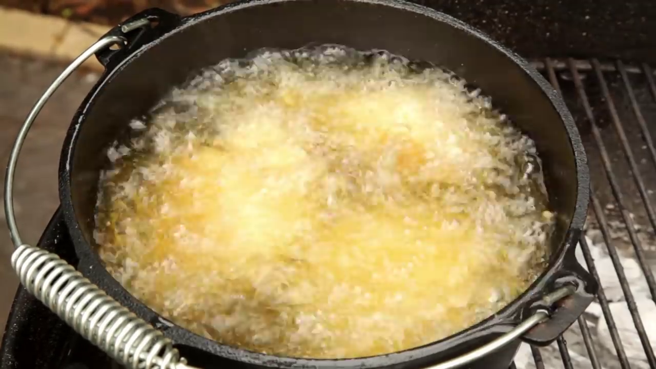 When frying with oil on the BBQ make sure to setup up in a cleared area and have a fire blanket on standby.