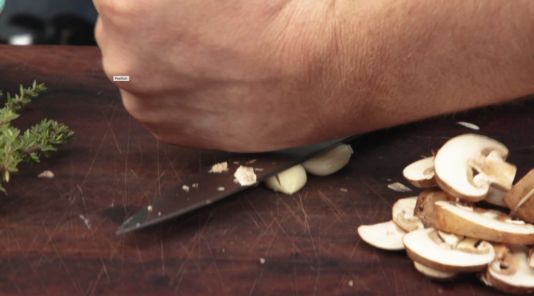 Begin by slicing the mushrooms and crushing three cloves of garlic.