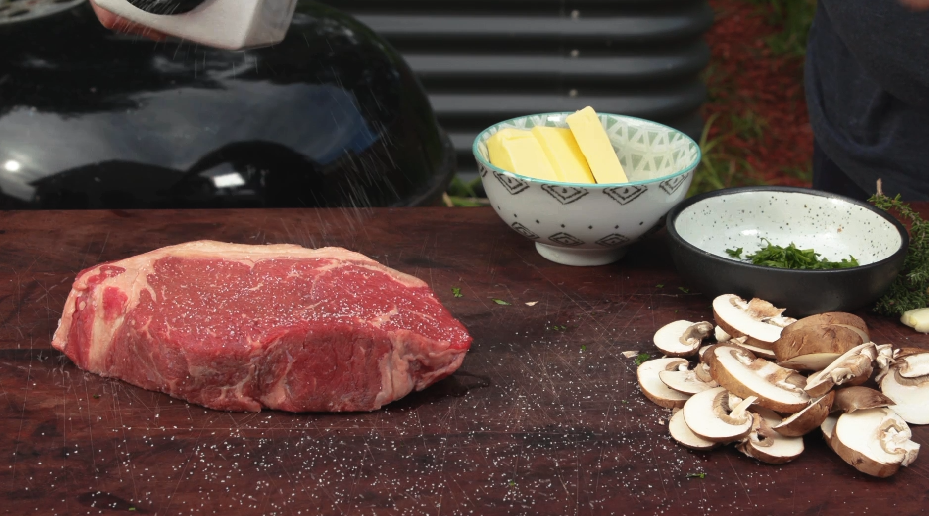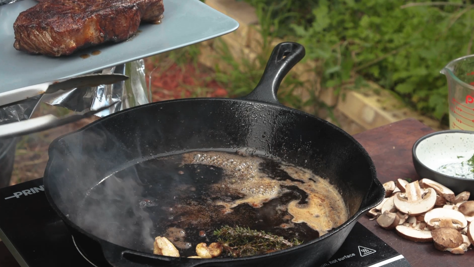 We’re going to be making Garlic Burnt Butter Creamy Mushroom Sauce with Porter House Steak.