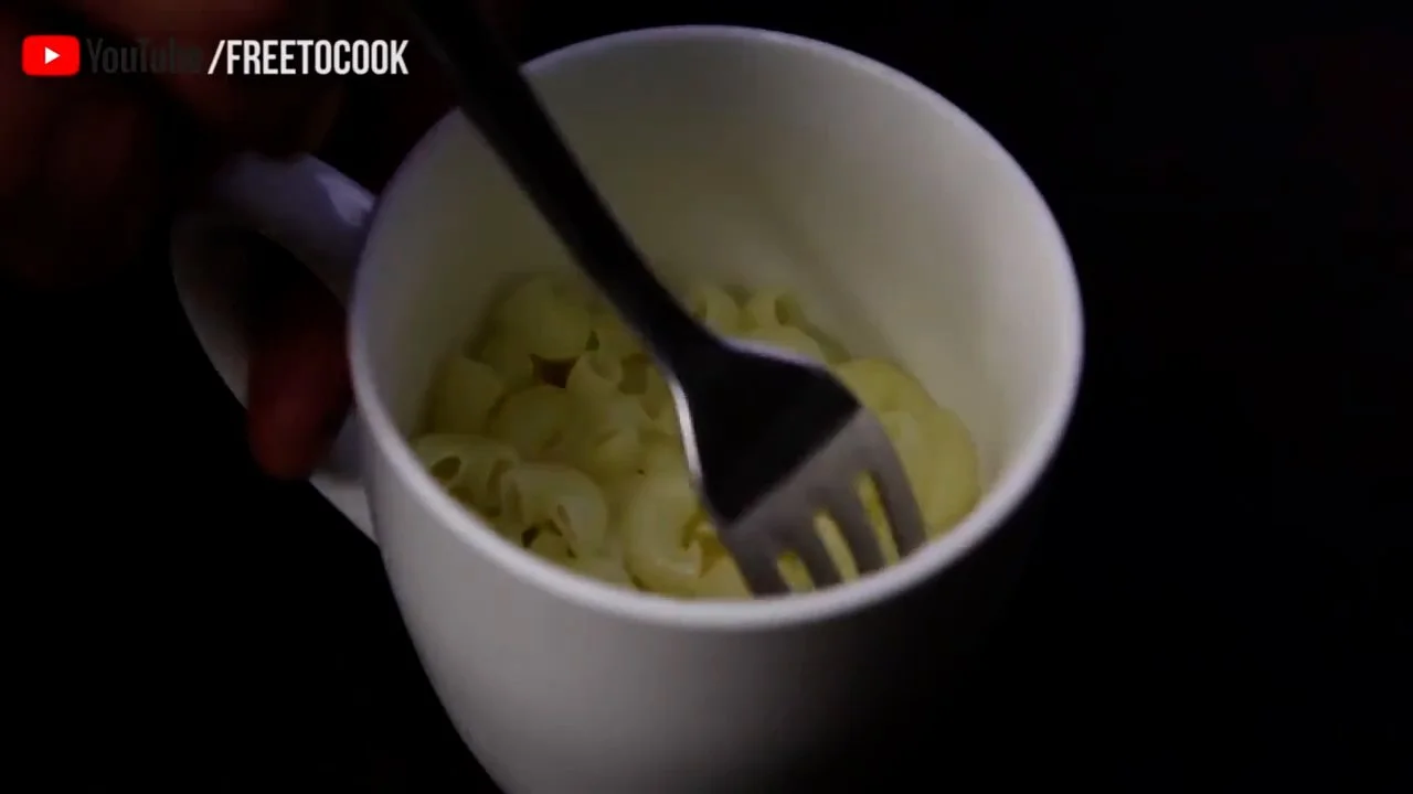 In a mug, add 1/2 a Cup of Macaroni.