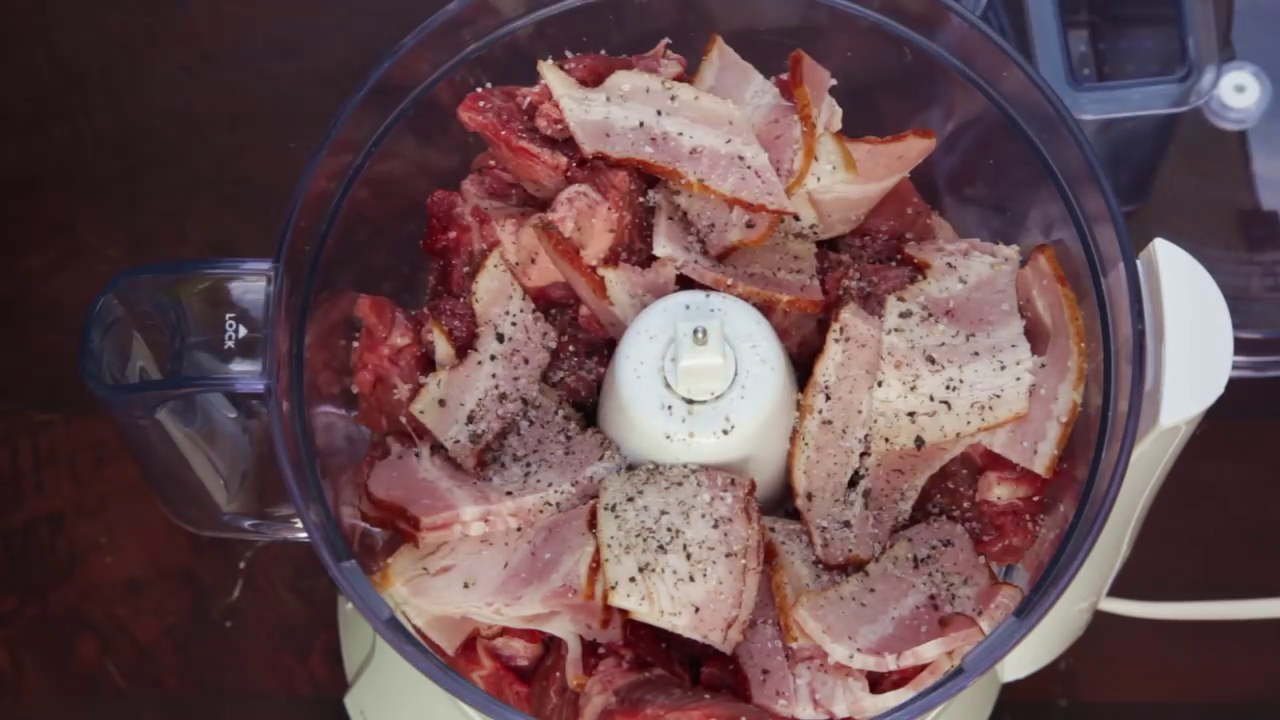 Continue to pulse under the meat it minced, if you’re in the US minced meat is called ground.