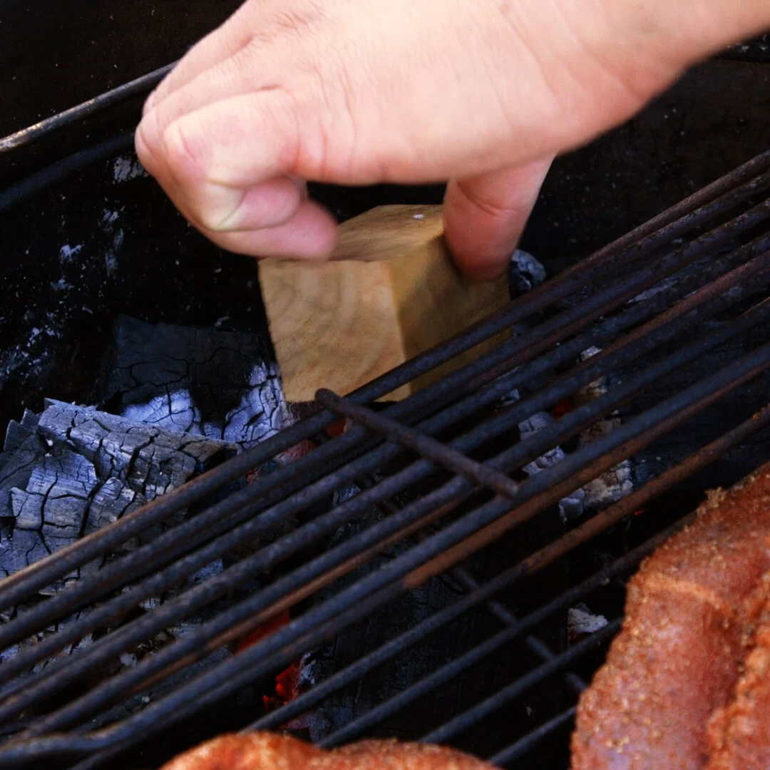 Try to get lumps of wood rather than the wood chips as they burn whereas we want the wood to smoulder creating that beautiful light blue smoke.