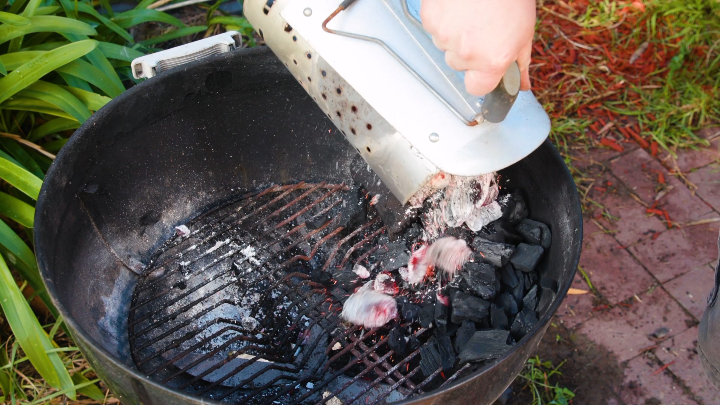 Let’s begin by adding a chimney of charcoal to the bbq.